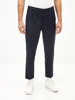 Zajímavé kalhoty 24h s pružným pasem a stahovací šňůrkou. Zapínání na zip a knoflík. Přední šikmé kapsy a zadní kapsy na zip. Volnější střih nohavic. Příjemný materiál s elastanem.