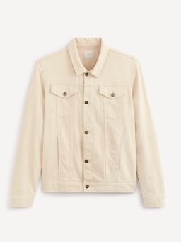 Trucker bunda se zapínáním na kovové knoflíky. U krku košilový límeček. Přední kapsy s klopami. Šikmé boční kapsy. Rukávy s manžetou na zapínání.