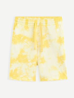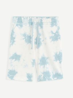 Bavlněné teplákové kraťasy s pružným pasem. V pase navíc stahovací šňůrka. Kraťasy mají šikmé boční kapsy a batikovaný vzor. Na zadní straně našitá velká kapsa.
