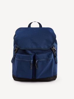Batoh na záda. Ramenní popruhy. Tento moderní batoh má v horní části širokou klopu se zapínáním na dvě přezky. Přední dvě kapsy se zapínáním na zip. Úchyt do ruky. Rozměry 40x31x13.