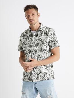Bavlněná košile s krátkým rukávem a plošným vzorem. Klasický límeček a kapsička na hrudi. Celopropínací na knoflíky.