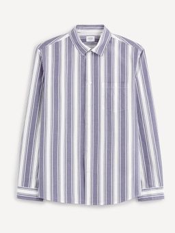Bavlněná pruhovaná košile s dlouhým rukávem. U krku klasický límeček. Na hrudi malá kapsička.