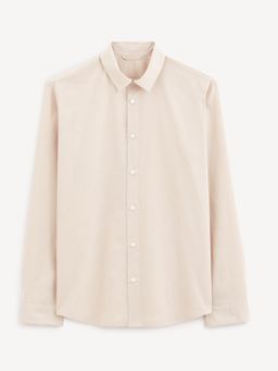 Lehká košile z bavlněného popelínového plátna. Košile má dlouhý rukáv s manžetou. Klasický límeček a zapínání na knoflíčky v kontrastní barvě. Zaoblený spodní lem. Příjemná jednobarevná košile k džínům i kraťasům.