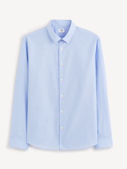 Objev dokonalý styl s touto elegantní pánskou košilí, která se skvěle hodí pro obchodní jednání nebo zvláštní příležitosti. Modrá košile v rovném střihu, vyrobená ze 100% bavlny, ti zajistí komfort a sofistikovaný vzhled. S dlouhými rukávy a italským límečkem dodáš svému outfitu nádech formální elegance.