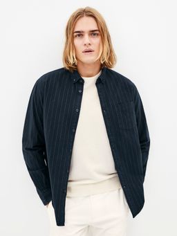 Pánská bavlněná košile s proužky. Rovný střih se zapínáním na knoflíčky. Límeček je také na zapínání. Na hrudi malá kapsička. Můžete nosit zapnutou i volně rozepnutou přes tričko. Vždy budete vypadat skvěle.