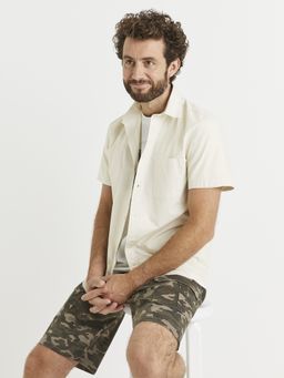 Bavlněná košile s krátkým rukávem. Moderní krátký límeček a rovný střih. Jednobarevná.
