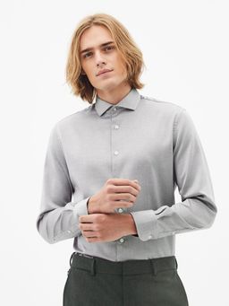 Šedá košile se zapínáním na knoflíčky. Límeček a dlouhé rukávy s manžetou. Společenská košile do saka.