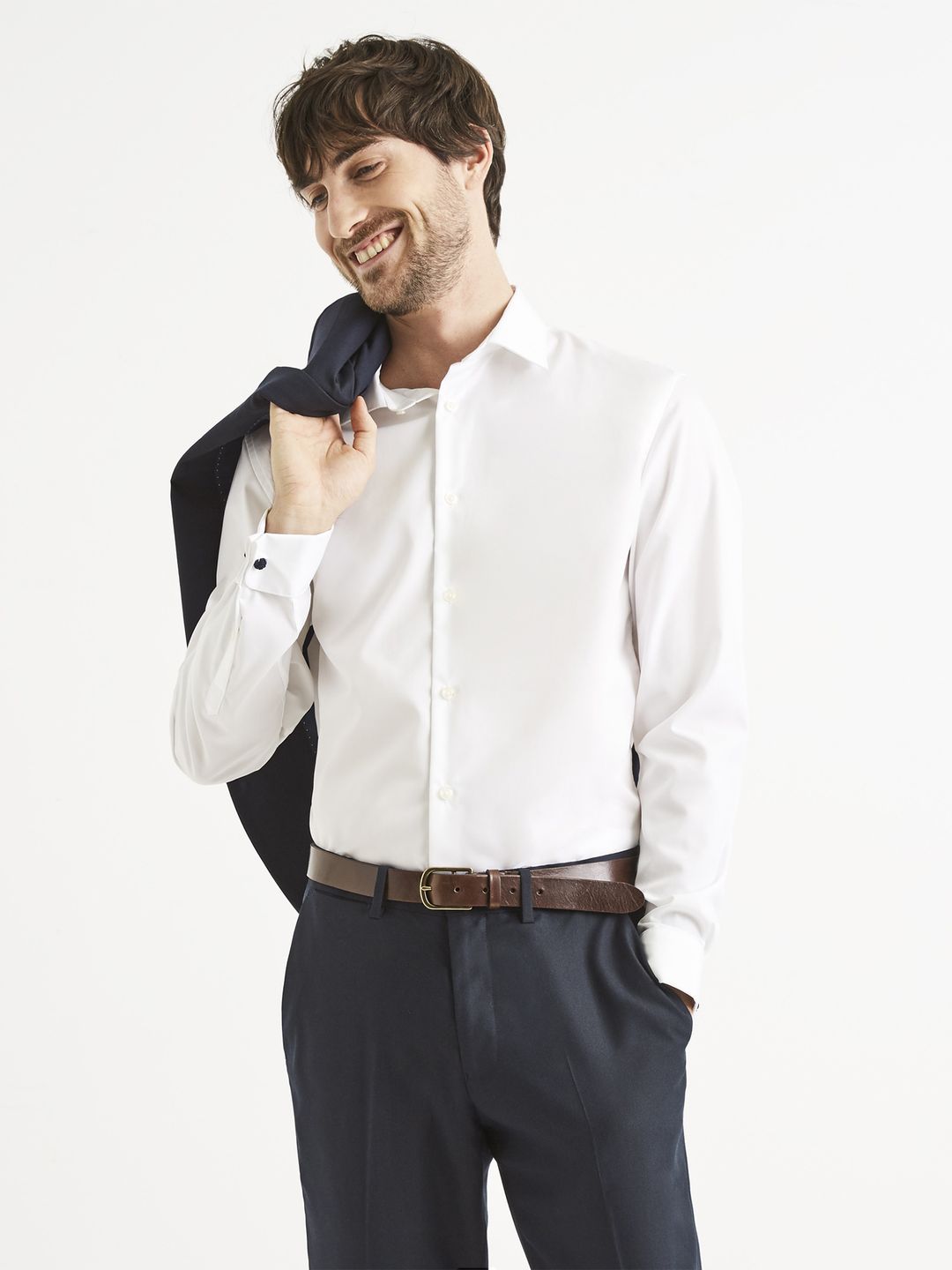 Bavlněná slim košile s dlouhým rukávem. Moderní krátký límeček. Zapínání na knoflíčky. Dlouhé rukávy s manžetami.