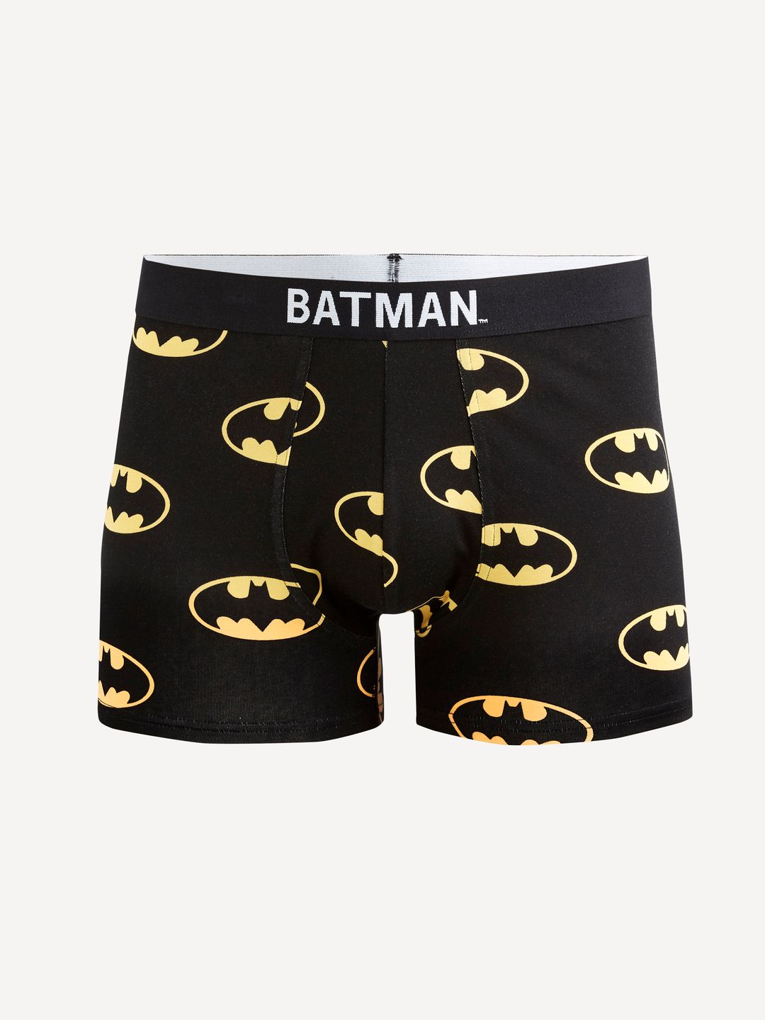 Bavlněné boxerky s elastanem. V pase pružná guma s nápisem Batman. Plošný vzor znak Batman.