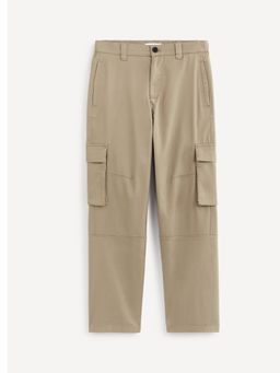 Bavlněné kalhoty cargo s elastanem. Pevný pas se zapínáním na zip a knoflík. Velké boční kapsy s klopami. Poutka na pásek.