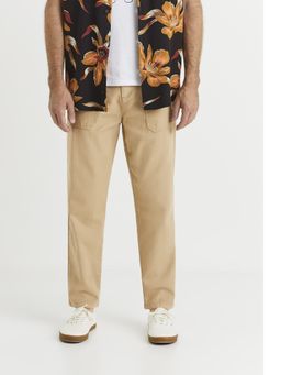 Pohodlné kalhoty z bavlny a lyocelu. Pevný pas se zapínáním na zip a knoflík. Šikmé kapsy s viditelným prošitím. Rovný a volný střih nohavic.