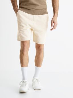 Bavlněné kraťasy z měkké teplákoviny. Pružný pas se stahovací šňůrkou. Šikmé boční kapsy. Našitá zadní kapsa. Délka nad kolena. Příjemné teplákové kraťasy pro volný čas.