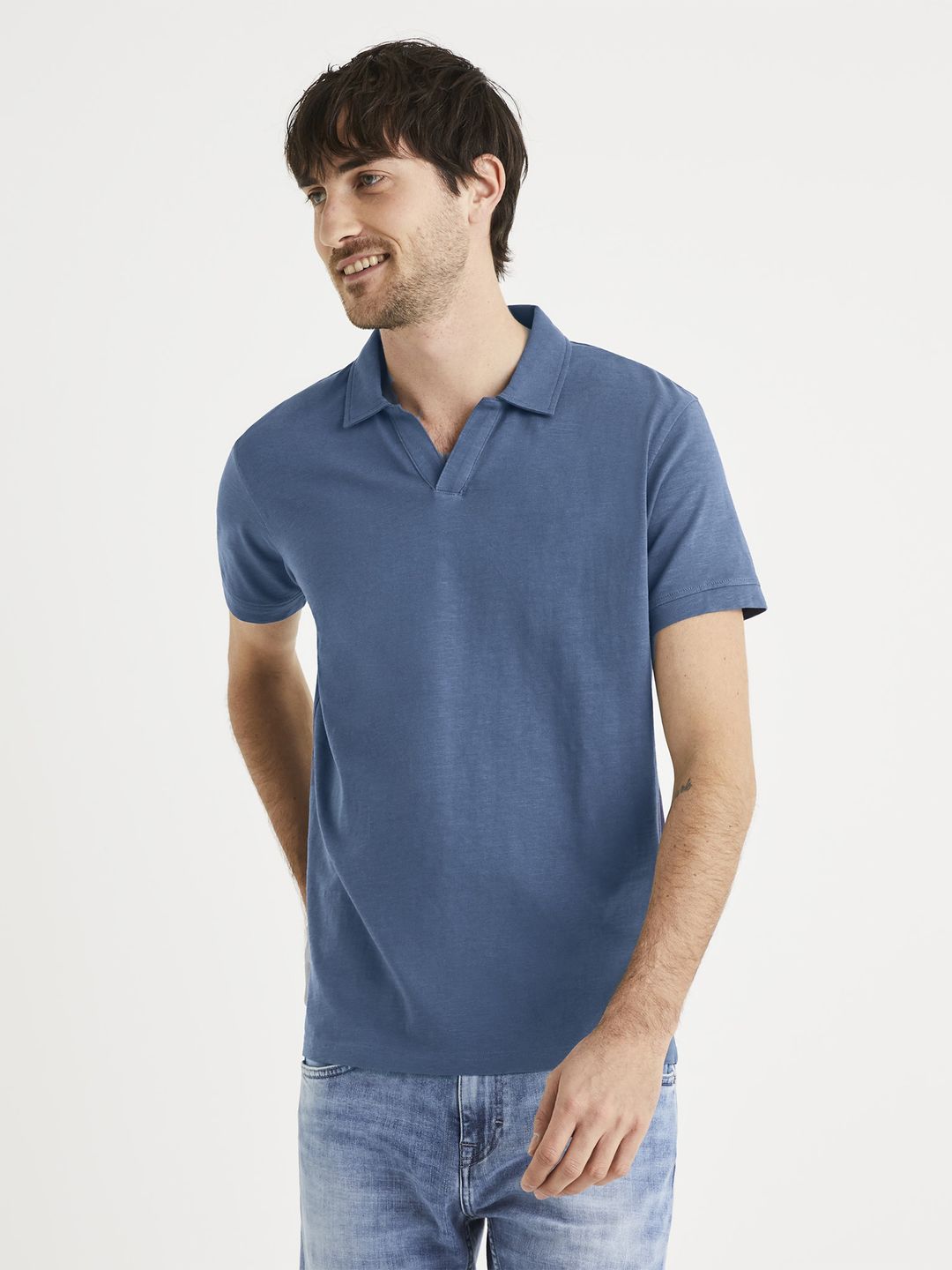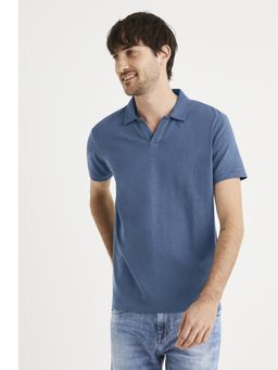 Jednobarevné bavlněné polo tričko. Krátký rukáv a rovný střih. Drobná reliéfní struktura pique.