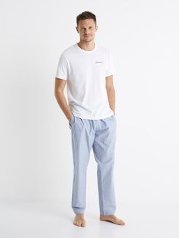 Bavlněné pyžamo. Bílé úpletové tričko s krátkým rukávem a nápisem Flemmard. Dlouhé pruhované kalhoty s pružným pasem. Pyžamové kalhoty mají boční kapsy a volnější střih.