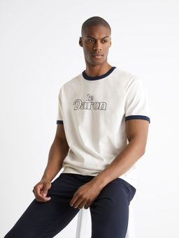 Bavlněné tričko s nápisem le Daron. Krátký rukáv a kulatý výstříh. Kontrastní lemování rukávů. 100% bavlna.
