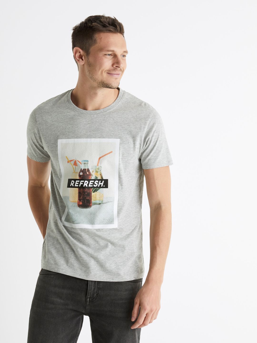 Bavlněné tričko s krátkým rukávem. Na přední straně potisk a nápis Refresh. Tričko má krátký rukáv a kulatý výstřih. Vyrobené ze 100% bavlny. Ke kraťasům a teniskám se bude skvěle hodit.