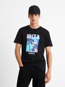 Bavlněné tričko s barevným potiskem. Nápis Ibiza Punta Blanca. Tričko má krátký rukáv a kulatý výstřih. Hodí se k džínům nebo kraťasům a teniskám.