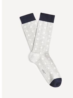 Bavlněné vysoké ponožky. Drobný vzor. Zesílená špička i pata v kontrastní barvě. Hladce pletené s pružným lemem.