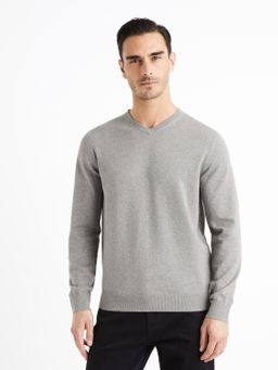 Bavlněný svetr s výstřihem do V a klasickým střihem rozhodně patří do pánského šatníku. Hodí se k džínům i k vzorovaným kalhotám. Je hladce pletený a jednobarevný.