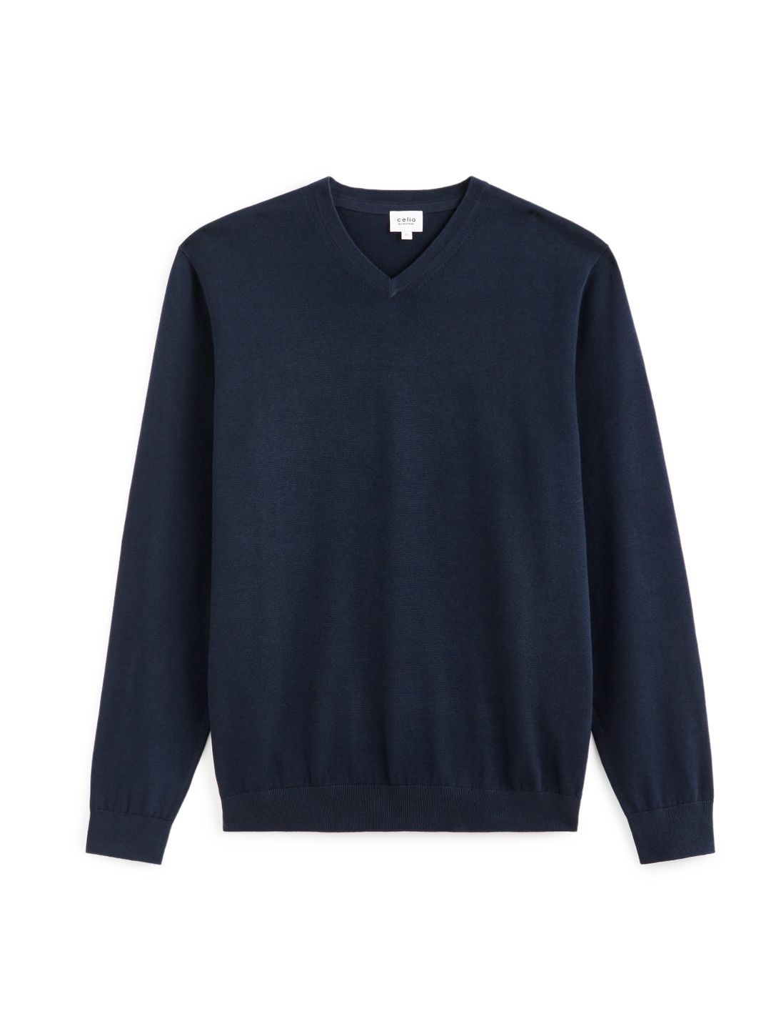 Bavlněný svetr s výstřihem do V a klasickým střihem se stane nezbytnou součástí tvého šatníku. Hodí se k džínům i k vzorovaným kalhotám. Je hladce pletený, jednobarevný a s lehkým melírem.
