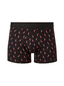 Objev pohodlí a originalitu s těmito pánskými boxerkami v černém provedení s potiskem chilli papriček. Černý elastický pas zaručuje pohodlné nošení, zatímco strečová bavlna ti poskytne maximální komfort a volnost pohybu.