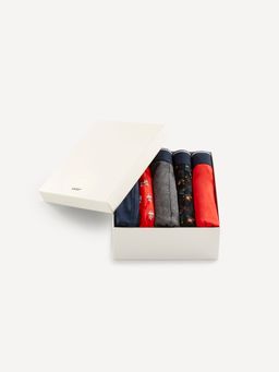 Dárkové balení boxerek. V balení celkem 5 kusů. Různé vzory a barvy. V pase pružná guma. Dárková krabička obsahuje hrací plochu šachovnice včetně hracích kamenů.