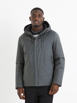Lehká bunda s kapucí. Kapuci nelze odepnout, ale má stahovací šňůrky. Příjemný materiál s lehkým vatováním. Zapíná se na zip a má krátkou krycí légu. Na vnitřní straně průhledná kapsička na zip. Rukávy lze v zápěstí stáhnout pomocí pásku na suchý zip. V horní části samostatná kapsa na zip. Boční kapsy na zip.
