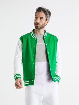 Bunda ve střihu bomber je navržena podle vzoru uniforem školního sportovního týmů. Bunda má rukávy v kontrastní barvě. Žebrování s pruhy na límci, manžetách a spodní části. Zapíná se na patentky a má přední šikmé kapsy. Nosí se ke slim džínům a teniskám.