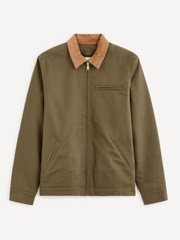 Bunda s košilovým límcem a khaki barvou patří do cool ležérního outfitu. Bundu lze snadno nosit k džínům nebo chino kalhotám. Zapíná se na zip a na rukávech má druky. Výhodou jsou také tři kapsy. Svrchní látka je ze 100% bavlny a odolává dešti.
