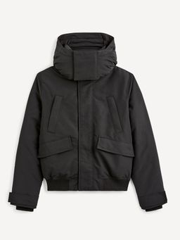 Bunda do chladného počasí. Vybavena kapucí s vysokým stojáčkem a zapínáním na suchý zip. Podšívka je prošívaná a s výplní z recyklovaného materiálu. Tkanina je vodoodpudivá, aby odolala dešti. Zapíná se na zip a krycí klopu na suchý zip. Na přední straně horní šikmé kapsy na zip a spodní kapsy s klopou. Rukávy s pružným nápletem a stahovací manžetou. Ve spodní části bundy také pružný náplet.