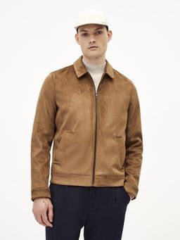 Bunda s límečkem. Se zapínáním na zip. Šikmé boční kapsy. Lesklá saténová podšívka. Skrytá vnitřní kapsička na zip. Imitace veluru.