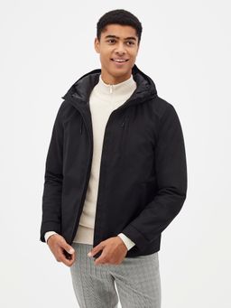 Bunda se zapínáním na zip. Vysoký límec a kapuce. Šikmé boční kapsy. Vnitřní kapsa na zip. Široký a kratší střih.