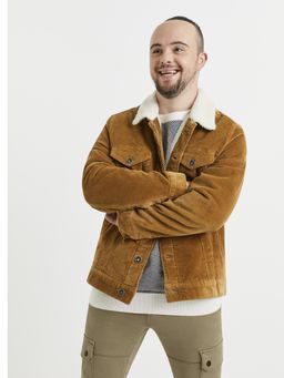 Bunda „trucker“ s úpravou velur. Z organické bavlny s elastanem. Kontrastní límeček. Kapsy s klopami. Dvě šikmé boční kapsy.