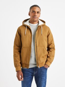 Bunda na zip. Kapuce se stahovací šňůrkou. Přední klokaní kapsa.