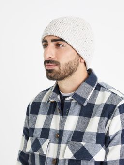 Pletená zimní čepice s nopky. Ohrnutý žebrovaný lem.