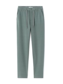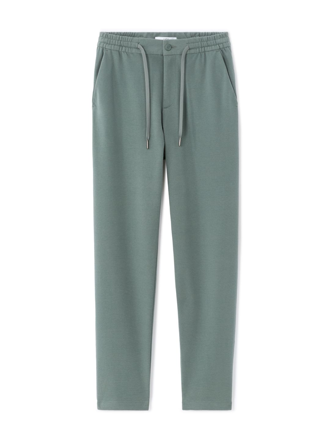 Tyhle zelené chino kalhoty z pleteného materiálu spojují ležérní styl s každodenním komfortem. Slim střih drží čistou siluetu, zapínání na zip a knoflík doplňuje stahovací šňůrka pro větší pohodlí. Nechybí boční kapsy v italském stylu ani zadní kapsy s lemováním.