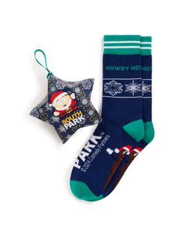 Ponoř se do bláznivého světa South Park s těmito ponožkami limitované edice, které tvému outfitu dodají hravý nádech! Tato sada námořnicky modrých ponožek s ikonickými vzory ze seriálu South Park je navíc zabalena ve stylové dárkové krabičce. Ponožky jsou vyrobeny ze strečové bavlny a mají vysoký elastický svršek, který poskytuje pohodlnou podporu po celý den.