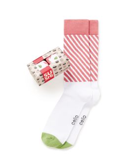 Obdaruj své blízké stylovým dárkem s těmito pánskými ponožkami, které zdobí hravé motivy sushi. Vysoké ponožky v bílé barvě přinášejí maximální pohodlí, zatímco jejich originální balení ve tvaru sushi dodává dárečku sváteční nádech!