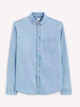 Džínová košile ve střihu regular. Košile má krátký límeček. Na hrudi má našitou malou kapsičku. Dlouhé rukávy s manžetou. Lehce zaoblený spodní lem.