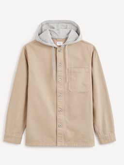 Nadčasová džínová košile je jedním ze základních prvků pánského šatníku. Tento model s dlouhým rukávem, doplněný žerzejovou kapucí se stahovací šňůrkou, budeš rád nosit každý den. Košile se zapíná na kovové knoflíky a na hrudi má našitou malou kapsu. Hodí se k džínům nebo volným kalhotám.