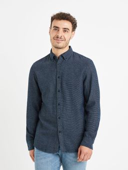 Bavlněná džínová košile se vzorovanou strukturou. Dlouhé rukávy zakončené manžetou. Moderní krátký límeček.
