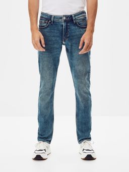 Džíny ve střihu straight. Pevný pas se zapínáním na zip a knoflík. Poutka na pásek. Standardních 5 kapes. Kontrastní prošití. Bavlněné s elastanem.