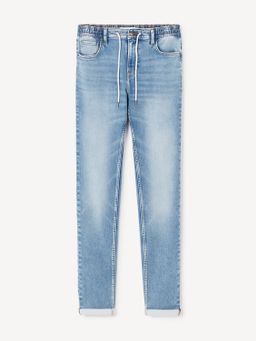 Předefinuj svůj styl s elegancí! Tyto úzké džíny v modré barvě s jemným vybledlým efektem nesmí chybět v žádném pánském šatníku. Díky strečové bavlně ti zaručí volnost pohybu, zatímco elastický pas se přizpůsobí tvým potřebám pro maximální pohodlí, a to v každém ročním období.