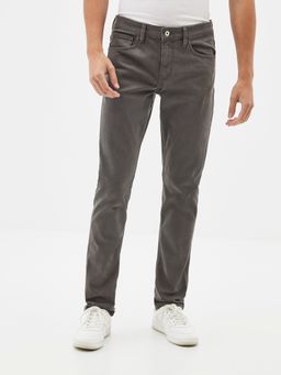 Kalhoty ve střihu straight. Standardních 5 kapes. Pevný pas s poutky na pásek. Zapínání na zip a knoflík. Volný střih nohavic. Bavlněné s elastanem.