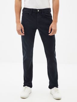 Bavlněné džíny s elastanem. Pohodlný straight střih. Klasických 5 kapes. Pevný pas se zapínáním na zip a knoflík. Poutka na pásek. Prošití tón v tónu.