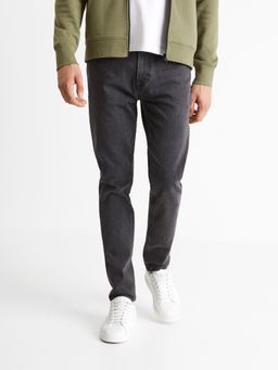 Šedé džíny s černým prošití. Oblíbený slim střih. Pevný pas se zapínáním na zip a knoflík. V pase poutka na širší pásek. Klasických 5 kapes. Bavlněné s elastanem.