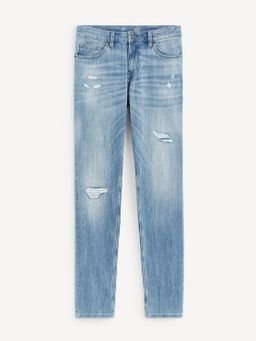 Džíny v oblíbeném slim střihu. Džíny mají klasické zapínání na knoflík a zip. Nechybí poutka na pásek a 5 kapes. Záměrně roztrhané džíny nejlépe doplníš tričkem nebo košilí.
