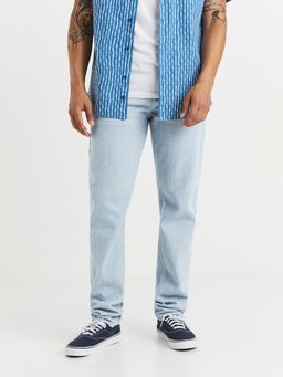 Světle modré džíny. Klasické zapínání na zip a knoflík. Standardních 5 kapes. 100% bavlna.