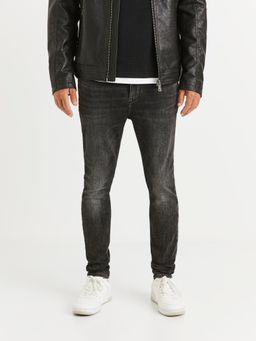 Šedé džíny s lehce opraným vzhledem. Upnutý skinny střih. Klasické zapínání na zip a knoflík. Pevný pas s poutky na pásek. Standardních 5 kapes. Příjemný bavlněný materiál s elastanem.