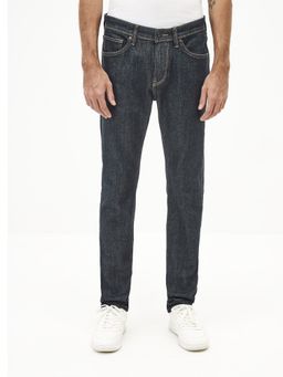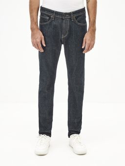 Tmavě modré džíny ve slim střihu. Středně vysoký pas. Zapínání na zip a knoflík. Klasických pět kapes. Bavlněné s elastanem.